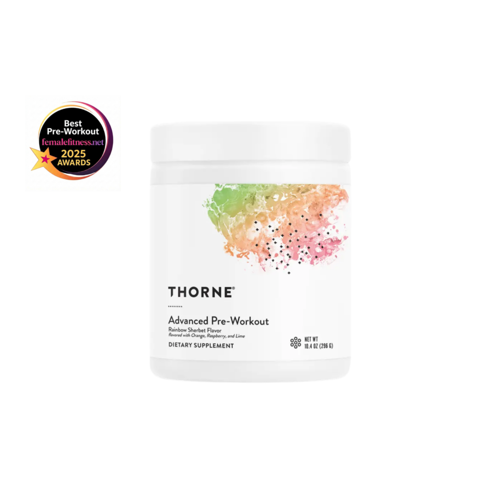 Thorne Advanced Pre-Workout stood out for a different reason: it delivers clean, sustained energy without the typical crash or overstimulated feeling.